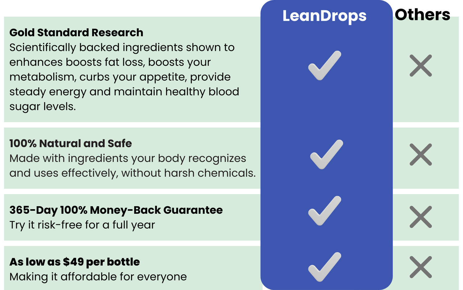 And with our 365-day, no-questions-asked money-back guarantee, LeanDrops offers a completely risk-free path to reclaiming your confidence, energy, and healthy weight—naturally and effectively.